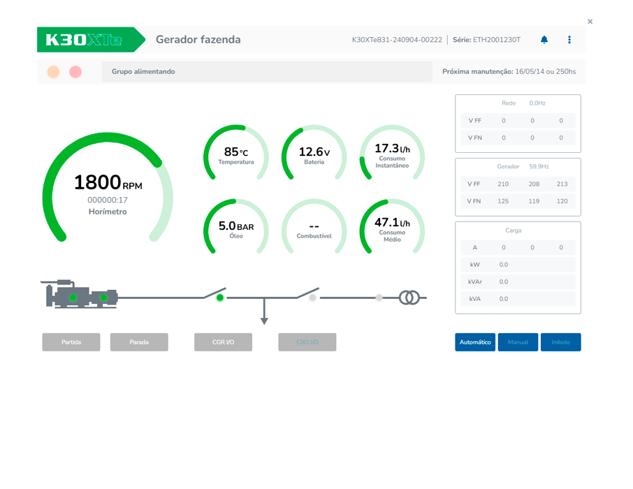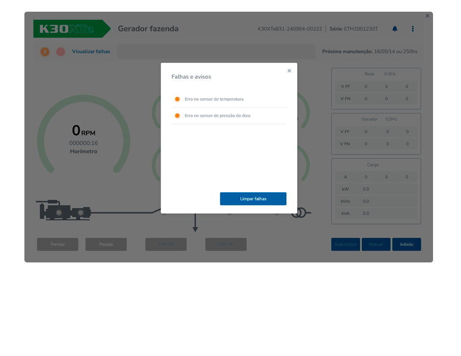 - Exibição do histórico de falhas, eventos e avisos;